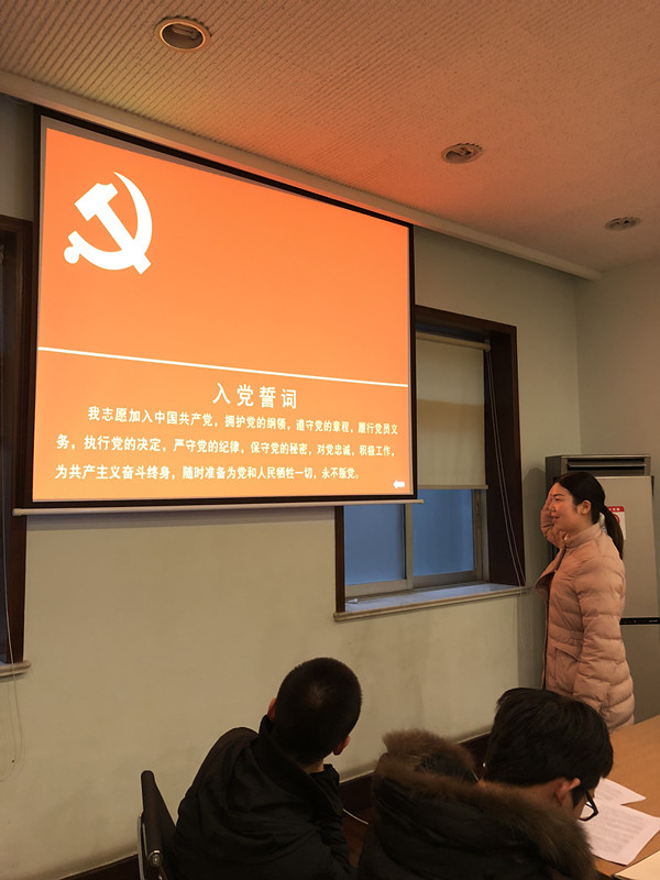 最后發(fā)展對象宣誓,她高亢激昂,聲音久久回蕩在會議室里,真正展現(xiàn)出了對黨的崇高敬意。